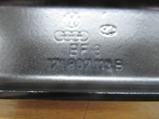 Bumpersteun 171807113B Artikel nummer: 171807113B Omschrijving: Bumpersteun Conditie*: B Prijs: €.35,00 sat / satz * A = nieuwstaat, B = gebruikt maar goed, C = met duidelijke gebruikssporen / beschadigingen Gestraald en gepoedercoat. Contact Terug naar overzicht