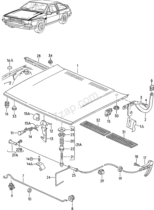 Diverse kleindelen motorkap, zeg wat je nodig hebt en we komen er wel uit.